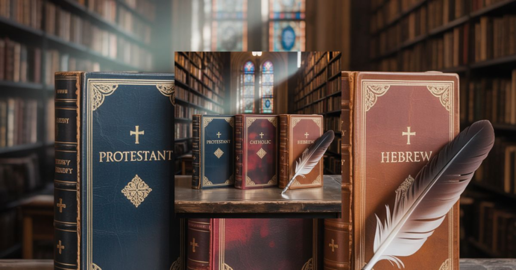 Jewish communities follow the Hebrew Bible (Tanakh) with 24 books, although the content overlaps with the 39 Old Testament books. The main difference is structure and grouping. These biblical canon differences remind us that the Bible is not one single list but a narrow vs broader Bibles issue shaped by history.
